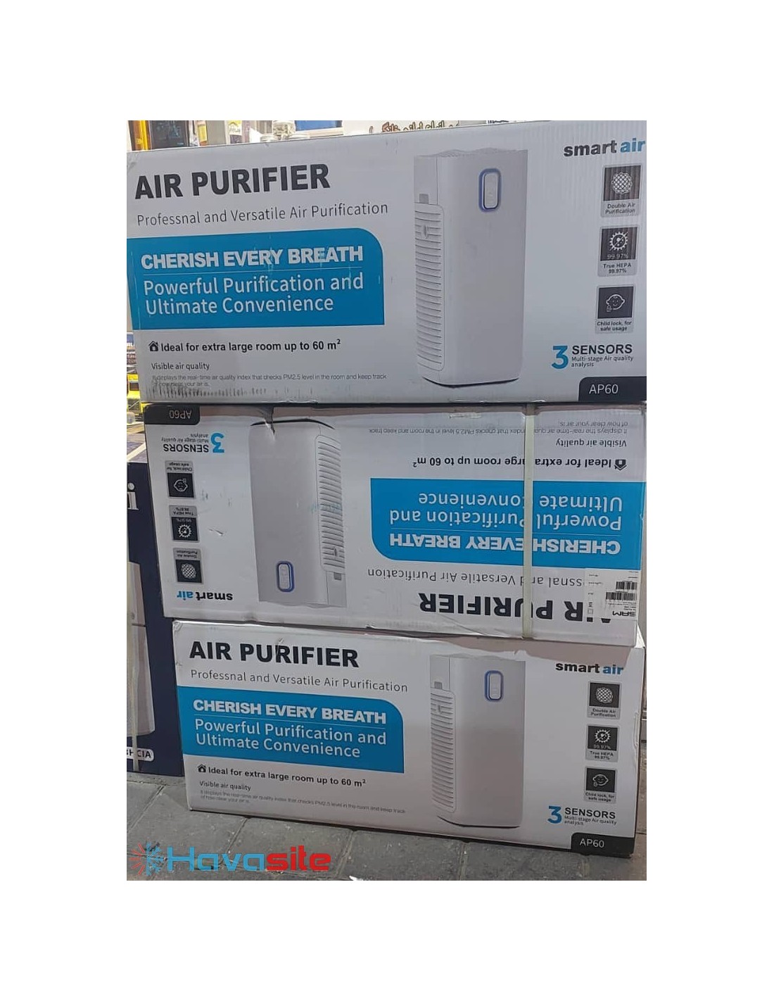 دستگاه تصفیههوا سام مدل AP60 (Smart Air) یک راهحل هوشمند برای هوایی پاک در فضاهای تا ۶۰ متر مربع است. این دستگاه با توان هوادهی بالا (۵۰۰ مترمکعب در ساعت) و یک سیستم فیلتراسیون پیشرفته پنجمرحلهای، هوا را با اثربخشی ۹۹.۹۷٪ تصفیه میکند و قادر است هوای کامل یک اتاق را در کمتر از ۲۰ دقیقه احیا کند. از ویژگیهای کلیدی این دستگاه تصفیه، کنترل کامل از راه دور و نظارت بر کیفیت هوا از طریق اپلیکیشن موبایل، عملکرد کاملاً خودکار مبتنی بر سه سنسور پیشرفته (تشخیص ذرات PM2.5، گردوغبار و گازهای مضر) و بهرهگیری از فناوری یون پلاسما برای خنثیسازی ویروسها، باکتریها و آلرژنهاست.